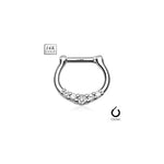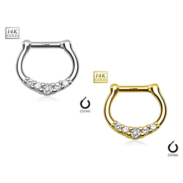14Kt Gold Septum Ring Clicker 5 Clear Paved CZ 16g 1 piece