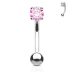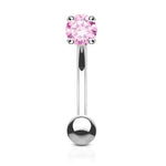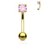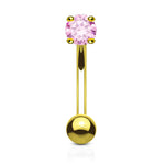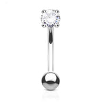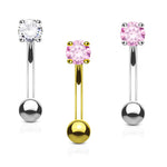 Eyebrow Ring Curved Barbell 14K Solid Gold with Prong Round Cubic Zirconia