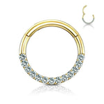 Hinged Hoop Rings for Nose Septum, Daith and More 14Kt Gold CZ Paved 16g