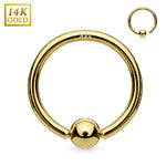 Hoop Ring 14K Solid White Gold and Yellow Gold with Fixed Ball Nose Ring Nipple Cartilage