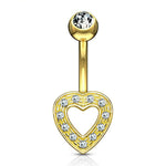 Heart Charm Clear CZ 14 Karat Solid Gold Navel Ring