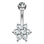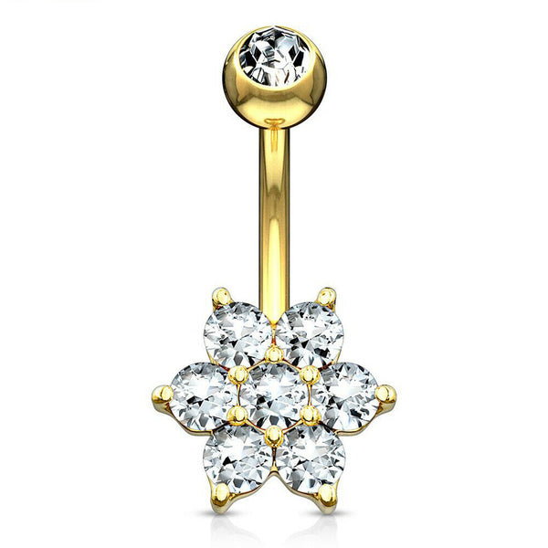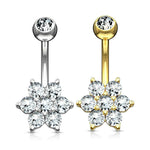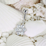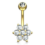 Flower Clear CZ 14 Karat Solid Gold Navel Ring