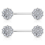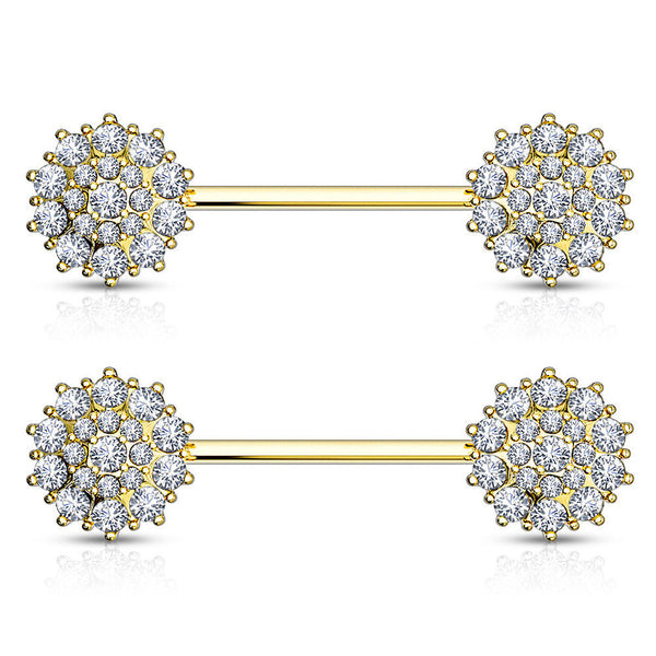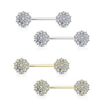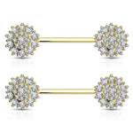 Nipple Barbell Triple Tiered CZ Flower Made of 14K Gold 14 Gauge