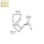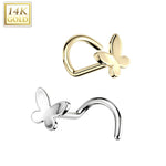 Nose Screw Rings With Butterfly Top 14 Karat Solid Gold 20 Gauge fit most of nose piercings