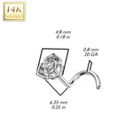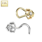 Nose Screw Rings With CZ Centered Flower top 14 Karat solid gold 20 Gauge fit most of nose piercings