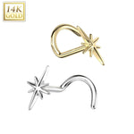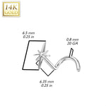 Nose Screw Rings With CZ Centered Sparkle Top 14 Karat solid gold 20 Gauge fit most of nose piercings