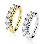 Open Hoop Rings for Nose, Ear Cartilage and Lip Piercings 14Kt Gold Five CZ Set