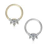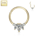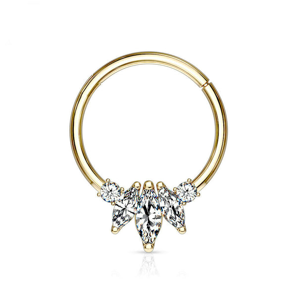 Septum Hinged Hoop Ring with Three Marquise CZ Design 14Kt Gold Perfect for Cartilage, Daith, Septum 16g