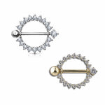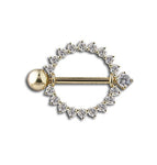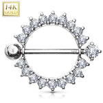 Solid 14K Gold Barbell Nipple Shield 14G with CZ Gem Nipple Ring