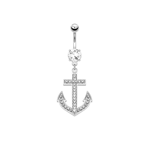 Solid 14K White Gold Anchor Design Navel RingDescription