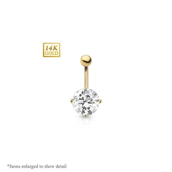 Solid Gold Navel Ring with Round Prong Set Cubic Zirconia