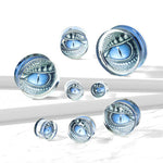 Ear plugs Blue Dragon Eye Print Encased Clear Acrylic Saddle Fit Plug