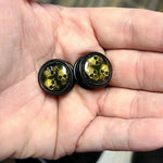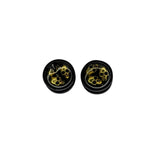 Pair of Acrylic Ear Plugs O-ring Triple Antique Gold Skull Design 16mm 5/8"