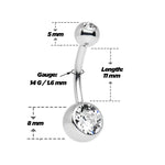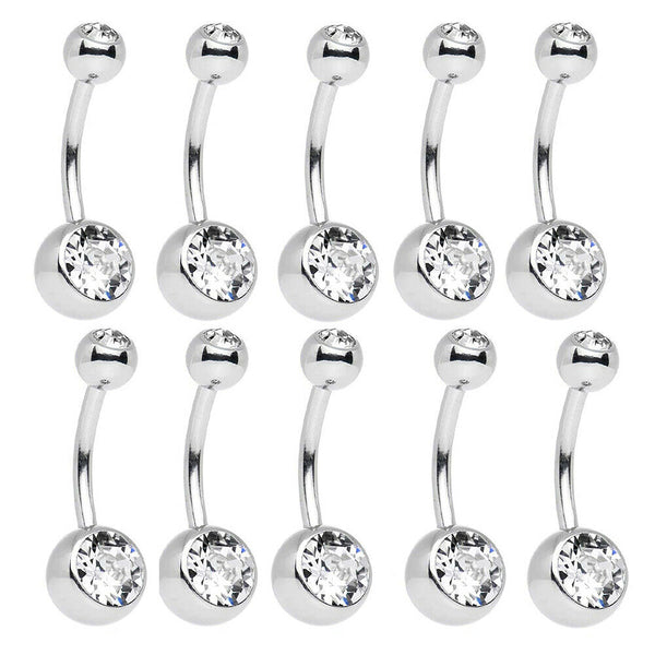 10 Clear CZ Belly rings Double Jeweled 14G 7/16" 11mm
