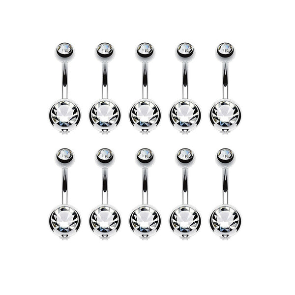 10PC Clear Belly Button Ring Double Multi color CZ Stainless Steel 14G Navel Body Piercing Jewelry