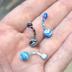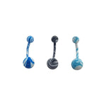 3 Pack of Belly Navel Rings Enamel Coated Surgical Steel Unique Hand Painted Designs 14 Gauge 14 Gauge 11mm - 7/16" Externally threaded. Set of 3.