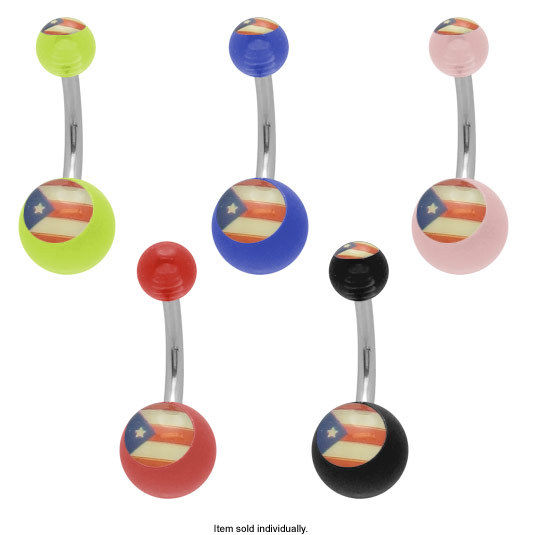 Acrylic Puerto Rico Flag Belly Button Ring DESCRIPTION This is an awesome Acrylic Puerto Rico Flag Belly Button Ring with a 316L Surgical Steel Shaft. The top bead measures 5...