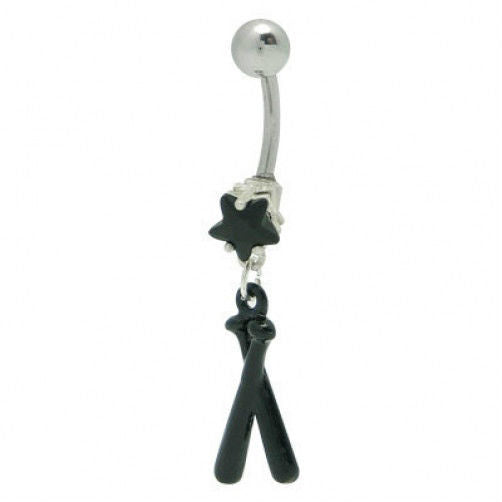 This captivating dangling black baseball bats belly button ring showcases your piercing and is made with only the highest quality 316L high-grade surgical steel shaft with black star CZ gem that sparkles.