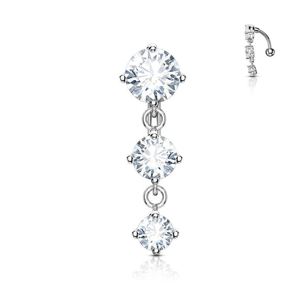Belly Button Navel Rings Three Prong Set Round CZ Vertical Drop Surgical Steel Top Drop