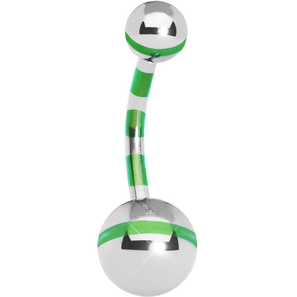 Belly Button Ring Anodized Titanium Green Striped 14ga 316L Steel