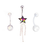 Package feature: One Dangle Belly Ring, One Double Cz Navel and a Belly ring Retainer