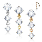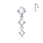 Belly Button Ring Reverse Design with Three Prong Set Round CZ Vertical Drop