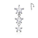 Belly Button Ring Reverse Design with Three Prong Set Star CZ Vertical Drop