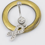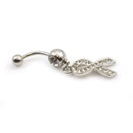 Belly Button Ring with Cancer Awareness dangle featured with Multiple CZ Stones