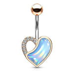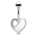 Crystal Paved and Illuminating Stone Filled Heart Surgical Steel Belly Button Ring 14ga