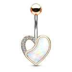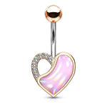 Belly Button Ring with Crystal Paved and Illuminating Stone Filled Heart - Two Tones Available Sold Each 14ga