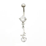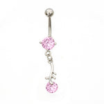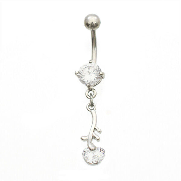 Belly Button Ring with Dangling Cubic Zirconia Leaf 14 Gauge Surgical Steel