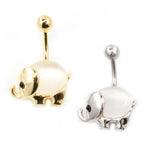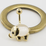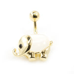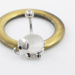 Belly Button Ring with Elephant Design and a Big Opalite Stone 14G