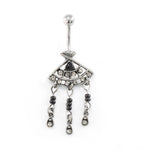 Belly Button Ring with Filigree Fan Dangle Design and Cubic Zirconia Gems 14G