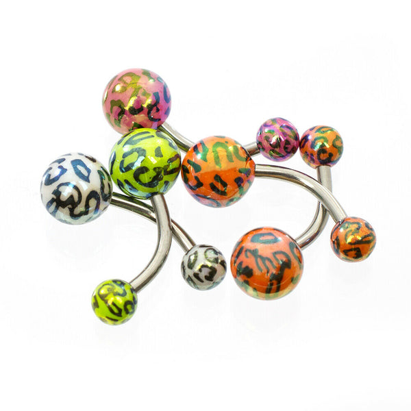 Belly Button Ring with Leopard Pattern Design 14g Description Belly Button Ring with Leopard Pattern Design 14g Measurement: 14g (1.6 mm), 5 mm Top Acrylic Ball, 10 mm Bottom Acrylic...