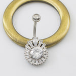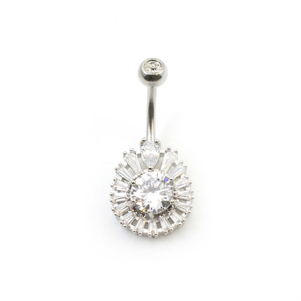 This navel ring has an elegant design featured with multiple Cubic Clear Zirconia Stones