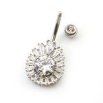Belly Button ring with Tear Drop Design and Multiple Cz Gems 14g