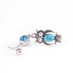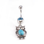 Belly Button Rings Owl Dangle Design with Turquoise and Aqua CZ Jewels / Navel