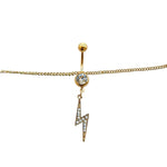 Belly Button Navel Ring Surgical Steel Gold Plated Waist Belly Chain with CZ Lightning Bolt Charm 14 Gauge