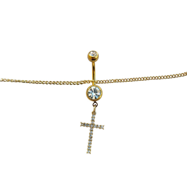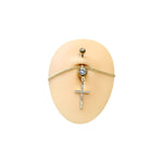 Belly Button Navel Ring Surgical Steel Gold Plated Waist Belly Chain with Dangle Paved Cross Charm 14 Gauge