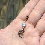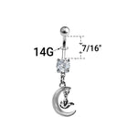 Belly Navel Dangle Clear CZ Gem Crescent Moon with Dove Bird Charm Surgical Steel 14g