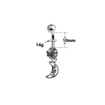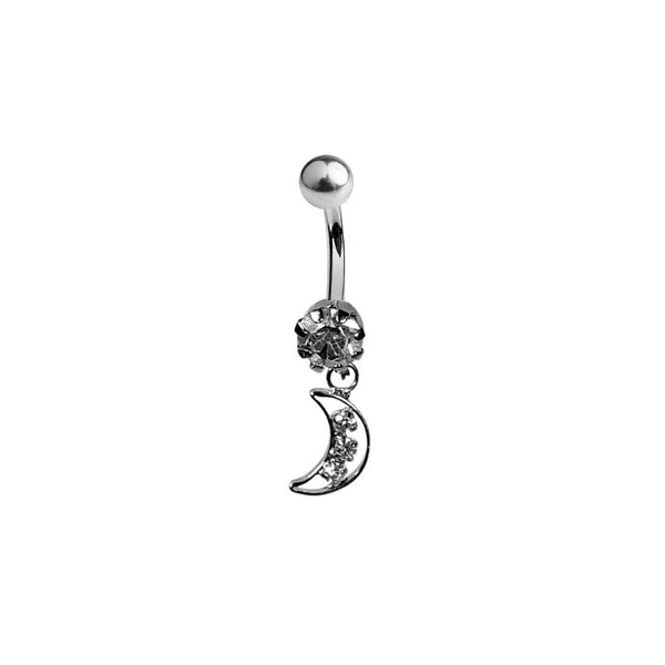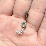 Belly Navel Dangle Ring Surgical Steel Crescent Moon with Clear CZ Gems 14g