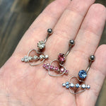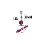 Belly Navel Dangle Ring Surgical Steel Arrow Through Heart with CZ Gems 14g - Sold individually