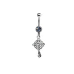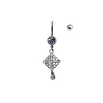 Belly Navel Dangle Surgical Steel Art Deco Diamond Clear CZ Gem Design 14g