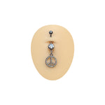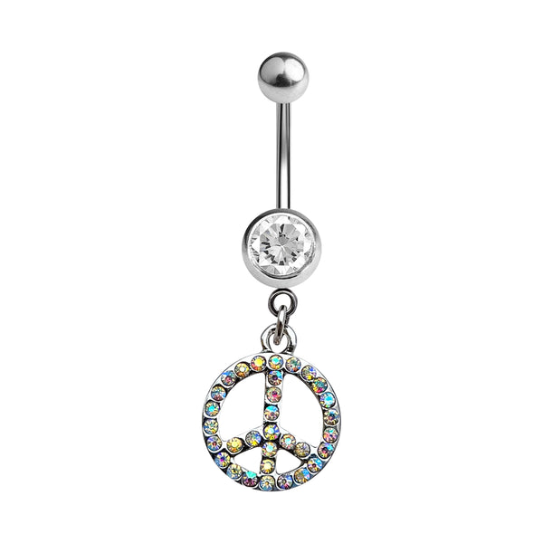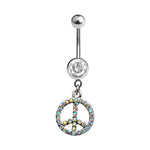 Belly Navel Ring Dangle AB CZ Jewels Peace Sign Surgical Steel 14 Gauge