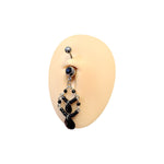 Belly Navel Ring Dangle Surgical Steel with 2 Tiered Black Beads Gothic Art Deco Style 14 Gauge