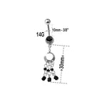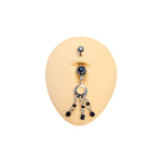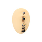 Belly Navel Ring Surgical Steel Triple Dangle with Black Beads Gothic Art Deco Style 14 Gauge