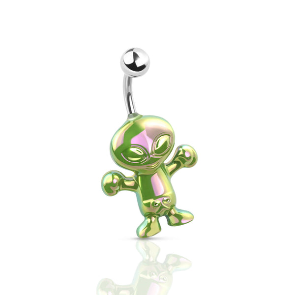 Belly ring Curved Barbell 14 Gauge Iridescent Effect Friendly Alien