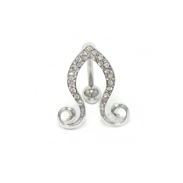 SURGICAL STEEL INVERTED BELLY RING WITH MULTIPLE CLEAR CZ GEMS 14GA DESCRIPTION Reverse Naval Ring with Press Fit Cubic Zirconia Gems 14ga Measures: 14g (1.6mm), 10 mm Length Shaft 20...