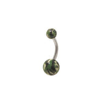Acrylic camouflage belly button ring with a 316L surgical steel shaft.