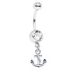 Dangle Belly Navel Ring - CZ Gems with Anchor Dangle - 14ga 316L Surgical Steel